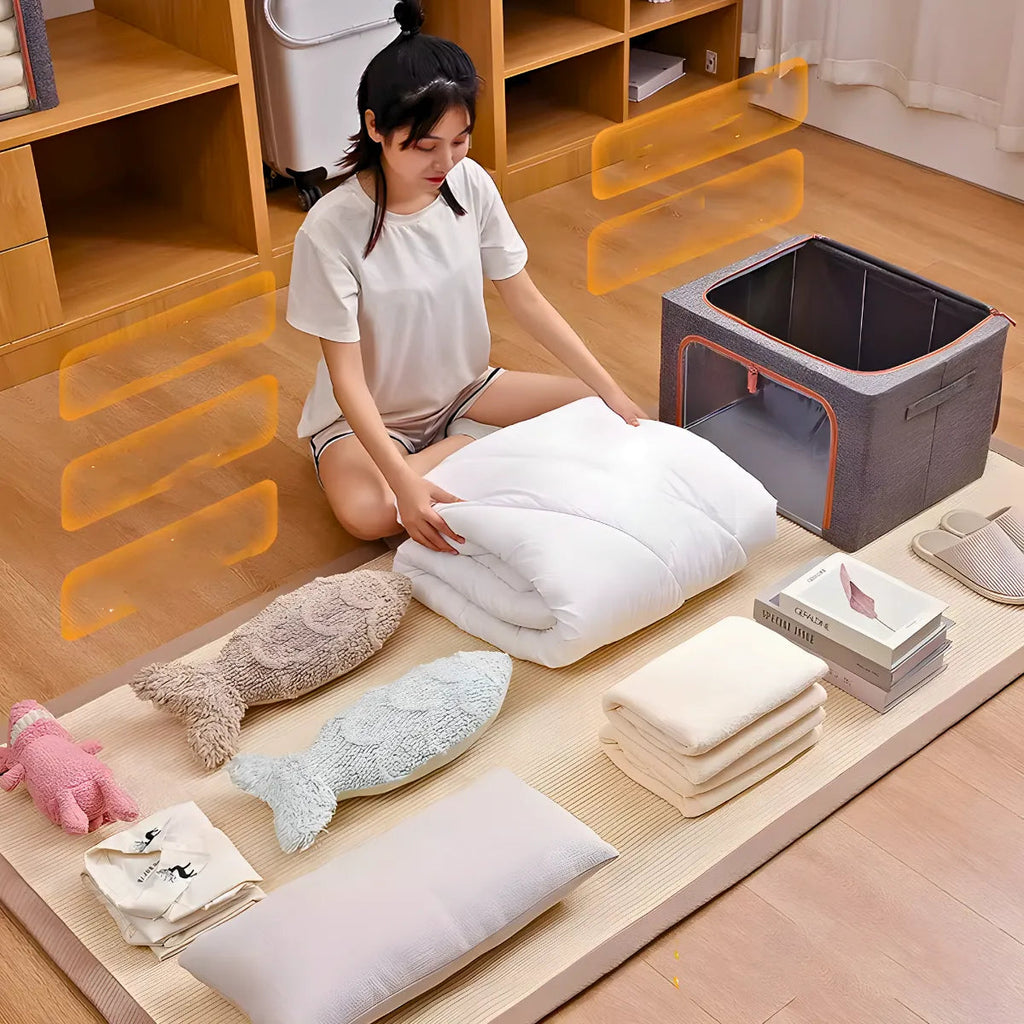 - Versatilidade de Uso: Ideal para roupas de cama, cobertores, edredons, brinquedos, roupas de bebê e outros itens, podendo ser utilizado em quartos, armários, closets, sótãos, porões e veículos.