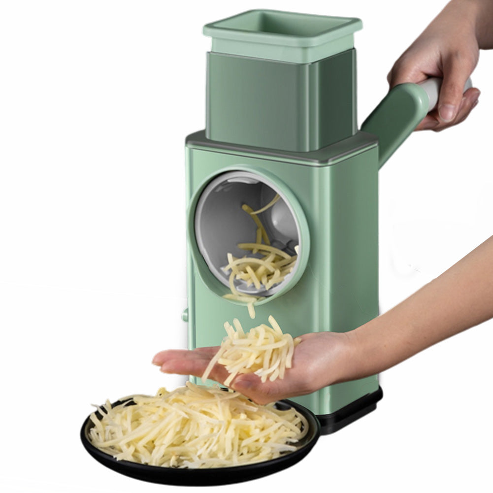 Este utensílio de cozinha vem com 3 lâminas intercambiáveis, que facilitam o corte, a picada e a moagem. É ideal para pepinos, cenouras, batatas, cebolas, queijo, chocolate, alho e até amendoins e amêndoas. Possui uma ventosa em sua base para fixação em superfícies lisas, garantindo mais estabilidade e segurança. A manivela funciona até 18 vezes mais rápido do que o corte manual tradicional.