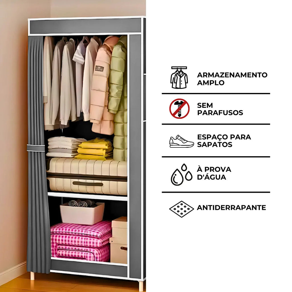 - Capa do guarda-roupa: Feita de TNT, tecido durável e respirável.