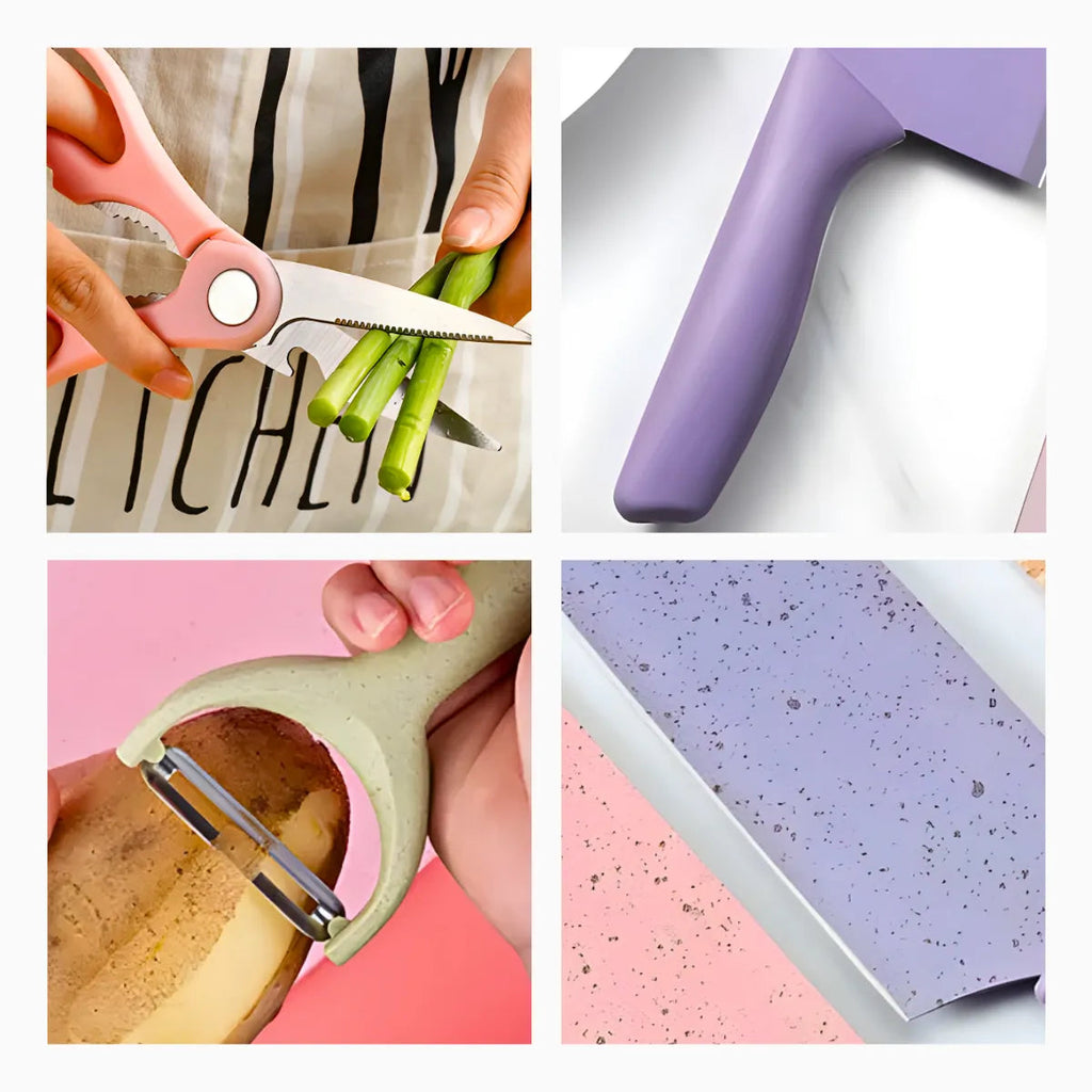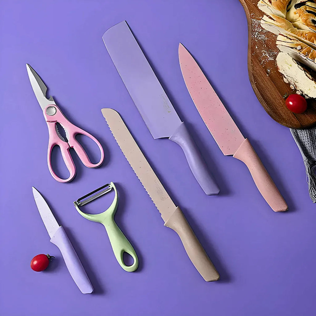 Apresentamos o Conjunto de Facas 6 Peças Aço Inoxidável Colorido, ideal para transformar sua experiência na cozinha. Cada peça é cuidadosamente projetada para oferecer durabilidade, precisão e beleza funcional.